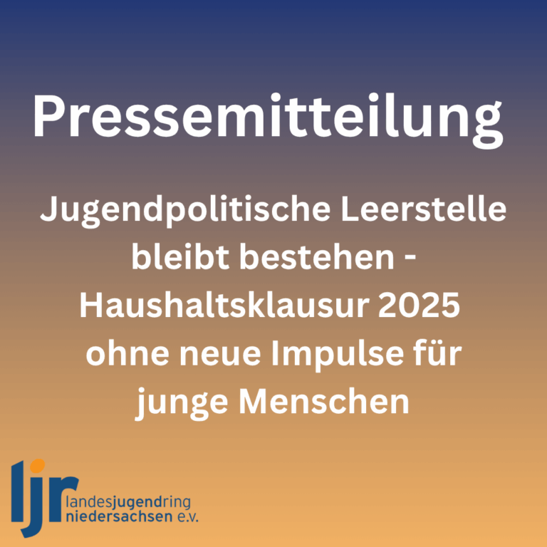 Trotz der beschlossenen milliardenschweren Investitionen im Rahmen der Haushaltsklausur 2025 bleibt die niedersächsische Landesregierung zentrale jugendpolitische Impulse schuldig. Die vorgestellten Maßnahmen konzentrieren sich erneut nahezu ausschließlich auf schulische Bildung, wirtschaftliche Entwicklung und infrastrukturelle Themen. Die nachhaltige Finanzierung jugendpolitischer Themen sucht man vergeblich.