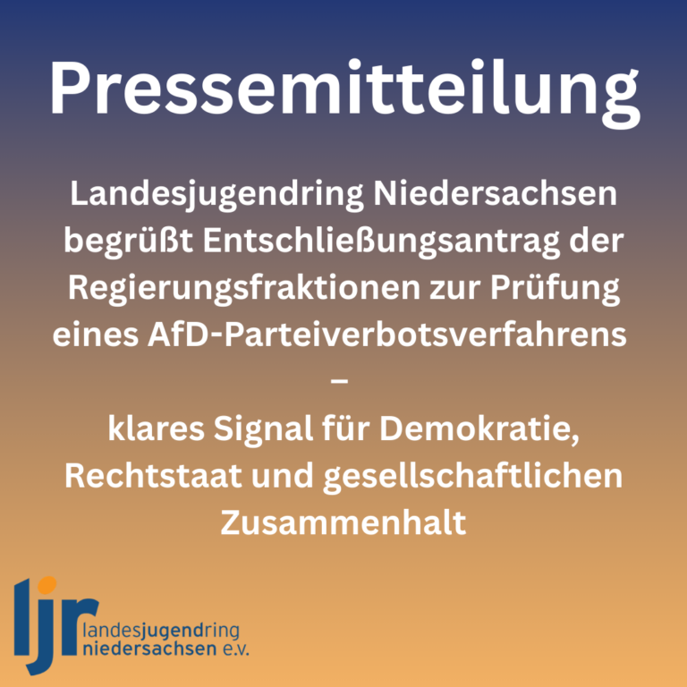 Pressemitteilung: Landesjugendring Niedersachsen begrüßt Entschließungsantrag der Regierungsfraktionen zur Prüfung eines AfD-Parteiverbotsverfahrens – klares Signal für Demokratie, Rechtstaat und gesellschaftlichen Zusammenhalt
