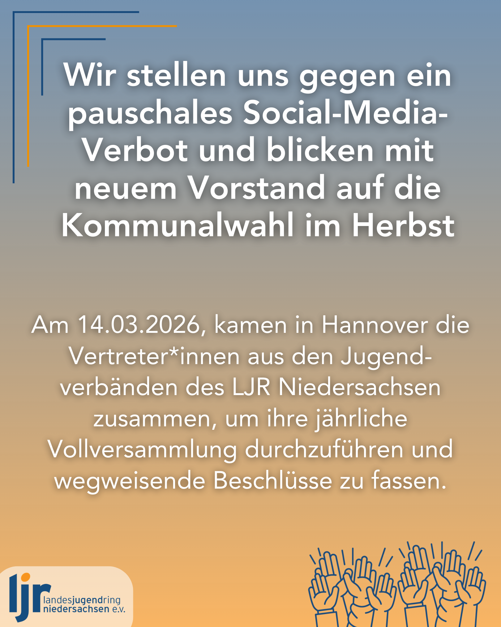 Am Samstag, den 14.03.2026, kamen in Hannover die Vertreter*innen aus den Jugendverbänden des Landesjugendrings Niedersachsen zusammen, um ihre jährliche Vollversammlung durchzuführen und wegweisende Beschlüsse zu treffen.